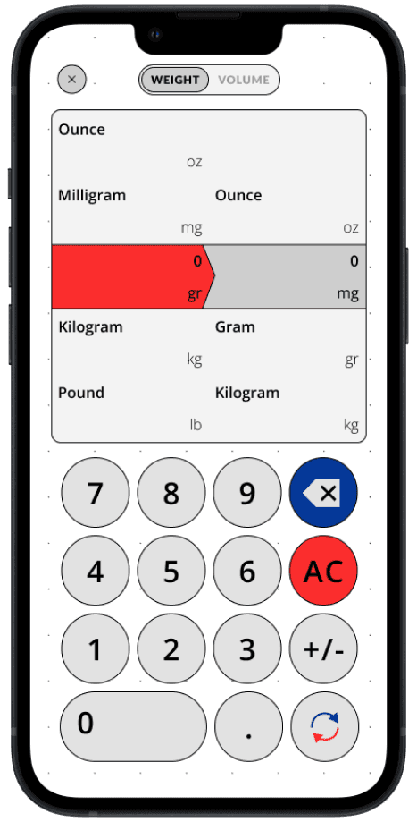 As the core feature of the app, I designed the ingredient measurement converter to be simple and intuitive. Users can easily toggle between weight and volume using a button at the top of the screen. They can then input the desired amount and instantly convert between the two measurement units with minimal effort, making the cooking process more efficient.