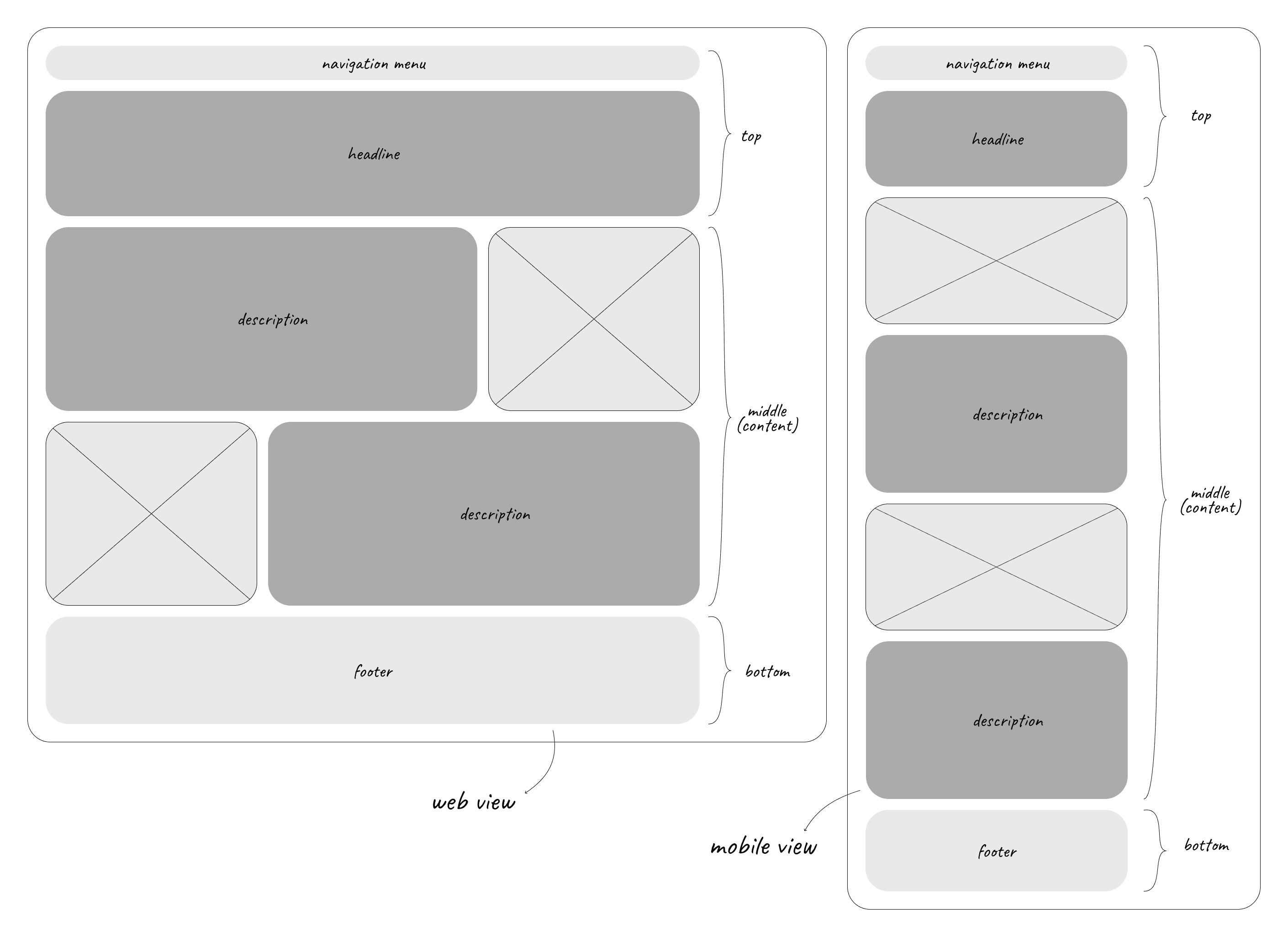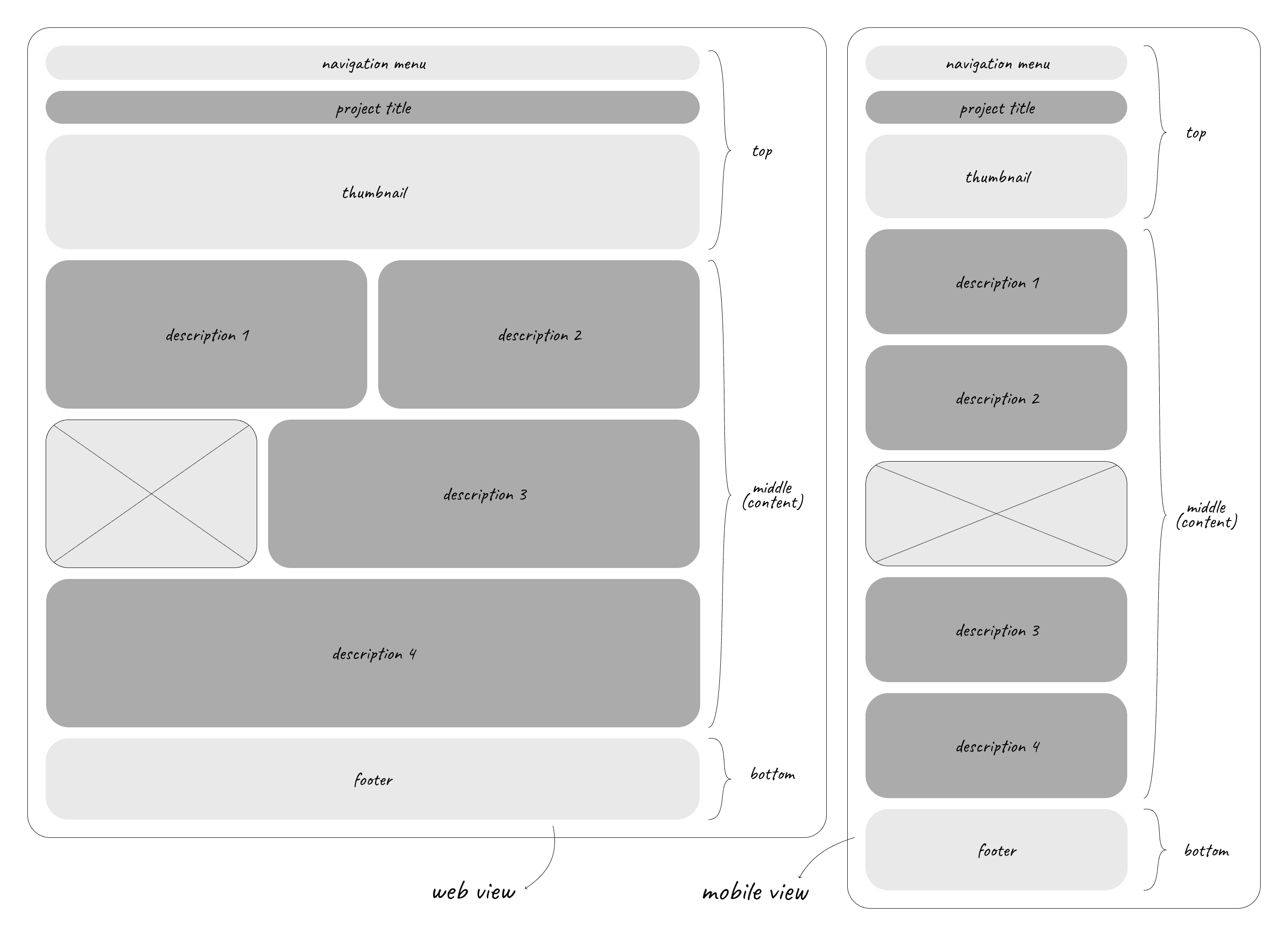 For content layout, I found that breaking up sections aids organisation and readability. The outline varies for desktop and mobile views and adapts to each page’s content. For example, the case study page centers on text with minimal images, so the layout includes generous spacing between paragraphs for readability.