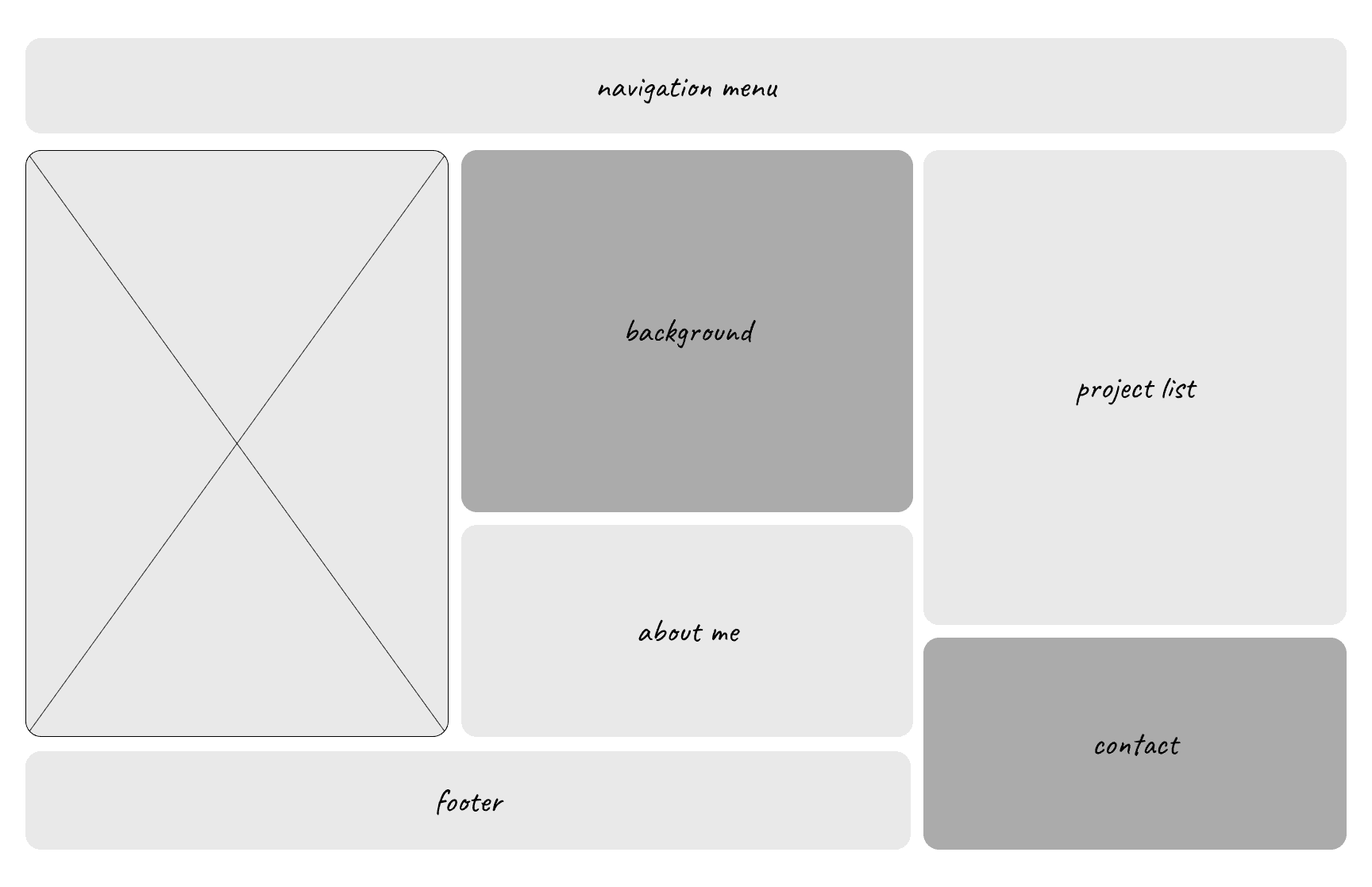 When I first started this project, I had several ideas in mind that I thought would work well for my portfolio. Initially, I was drawn to a bento-style layout for my landing page, envisioning a grid of organized tiles that would offer visitors a clear, engaging overview. Naturally, I planned to carry this same style over to the projects page, giving it a cohesive look and organised structure for displaying my work. As I began designing these screens, I focused on arranging the content in a way that felt both visually appealing and easy to navigate, with each element in its place.