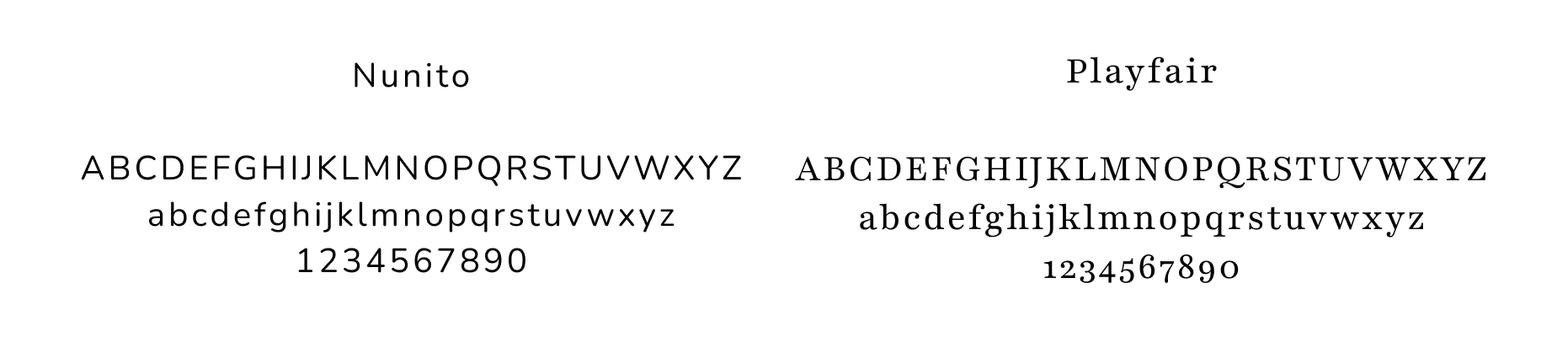 When it comes to ensuring readability and consistency in a portfolio, font choices and text styling are the key elements. Together, they set the tone and contribute to a cohesive, visually appealing design. Since I want my case studies to be easy on the eyes, a sans serif font with letter spacings and a16-pixel text size are the selections that I think provide just that. So I went through a few selections of fonts and found that Nunito, which I found both clean and cute, is the best to be used as a font to display the texts of my case studies. Another one that caught my eye is a serif font Playfair, a high-contrast serif with classic, elegant strokes that adds a lively touch in larger sizes or lighter weights. Thus, using it for the titles and headlines on other pages give them just the right touch of charm, giving a whimsical and inviting feel.